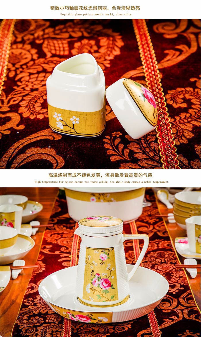 72頭花木蘭餐具,餐具60頭 ,一個(gè)湯煲,一個(gè)魚盤,一個(gè)十寸圓盤,一個(gè)牙簽筒,一個(gè)花籃,一個(gè)大飯勺,兩個(gè)調(diào)料壺,兩個(gè)蓋碗,四個(gè)碗,十個(gè)4.5寸飯碗,十個(gè)4寸湯碗,十個(gè)8寸盤,十個(gè)調(diào)羹,十個(gè)筷子架,