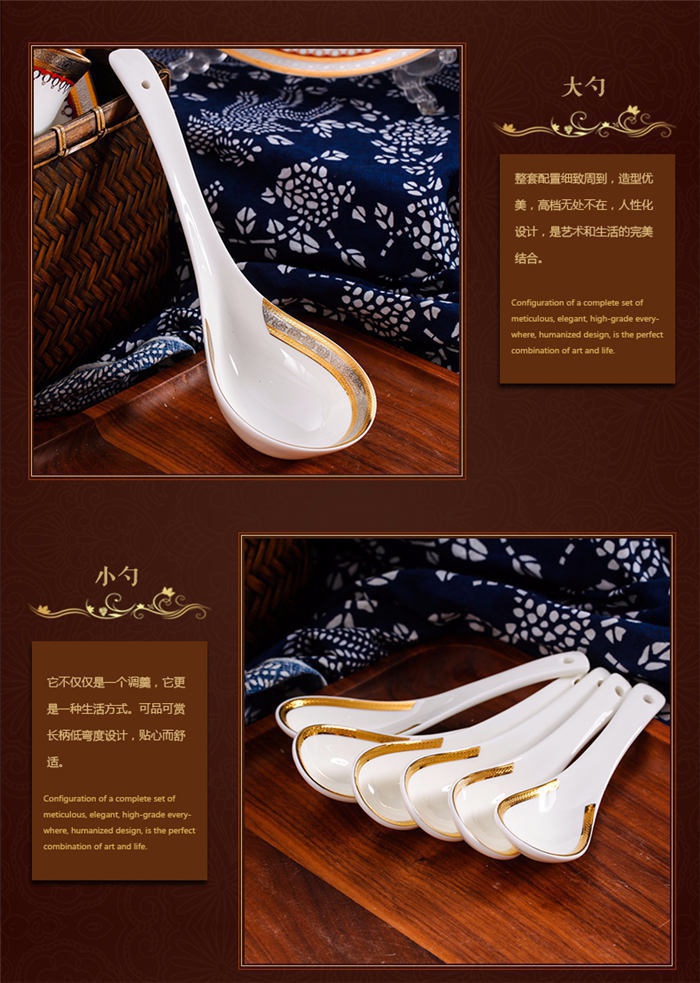62頭浮雕金,一個湯煲,一個飯勺,一個大湯勺,一個調(diào)料碟,一個牙簽筒,一個長方盤,一個魚盤,一個十寸大圓盤,四個面碗,十個飯碗,十個大骨碟,十個八寸盤,十個調(diào)羹,十個筷子架