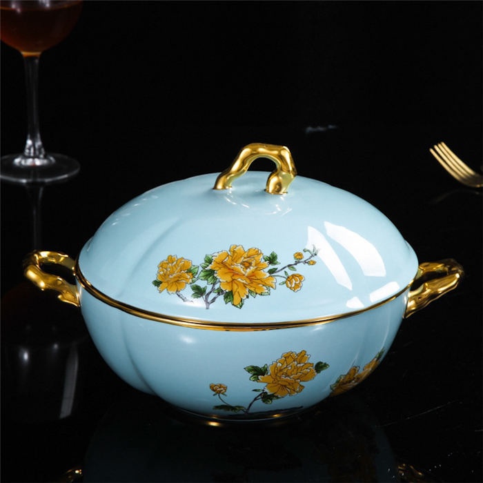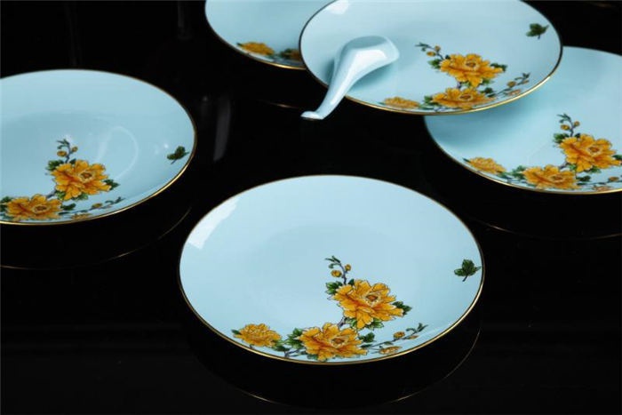 4.5寸碗10個,小湯勺10個,筷子架10個,骨碟10個,湯煲1個,大湯勺1個,菜盤10個,大圓盤1個,魚盤1個,果盤1套,大合器2套,湯盅2套,面碗2個